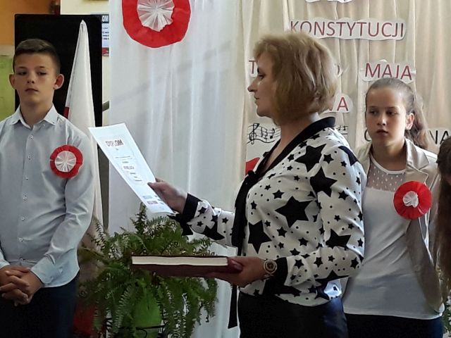 Laureatem w kategorii I – uczniowie klas IV-VII szkół podstawowych został Paweł Kobiałka z klasy VI, którego niezwykle oryginalna praca przedstawiająca historię wizerunku naszego godła, została