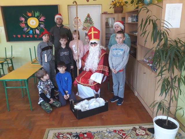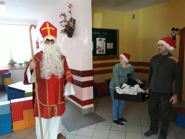 brodę, wąsy i czapkę czerwoną na bok przekrzywioną.