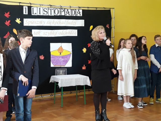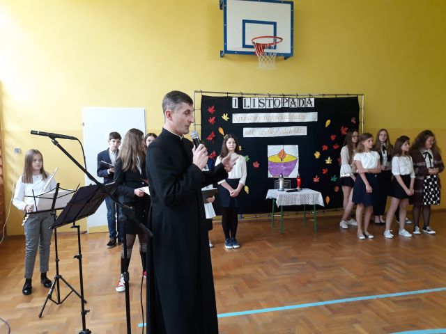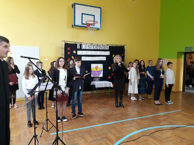 Na zakończenie apelu głos zabrała Pani Dyrektor podkreślając troskę o pamięć wobec tych, którzy odeszli i którym winniśmy naszą wdzięczność wyrażoną w modlitwie oraz zachętę do życia tak, byśmy swoim życiem zasłużyli na świętość i wdzięczną pamięć potomnych.