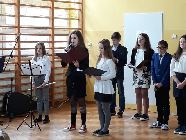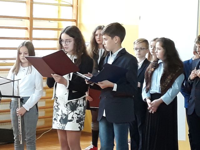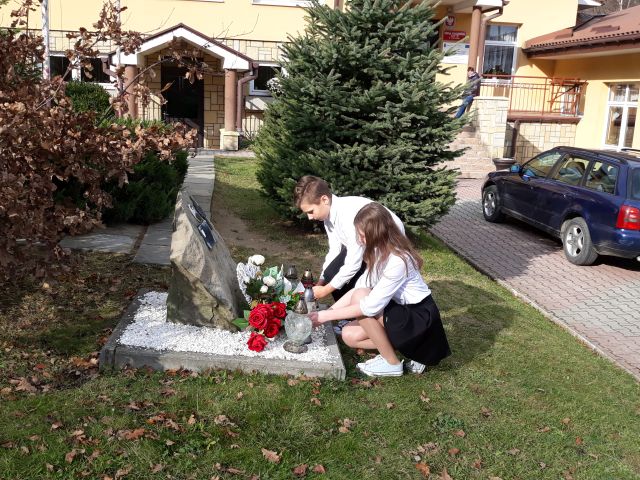 Druga część zawierała treści podkreślające potrzebę pamięci o zmarłych, zarówno tych bliskich z rodziny, jak i tych nieznanych, którzy oddali życie za naszą wolność. W trakcie apelu dwoje uczniów, w imieniu całej społeczności szkoły, zapaliło znicze przed pomnikiem patrioty Wacława Janusza, mieszkańca Golcowej, który zginął w Miednoje, walcząc w obronie Ojczyzny.