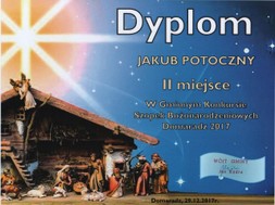 Przyznano również nagrody w Konkursie Szopek Bożonarodzeniowych, który miał na celu propagowanie pięknej tradycji szopkarstwa polskiego, zachowanie tradycji budowania Szopek Bożonarodzeniowych oraz rozwijanie wrażliwości estetycznej i uzdolnień plastycznych wśród dzieci i młodzieży z terenu naszej gminy. W Konkursie Szopek Bożonarodzeniowych w kategorii I (klasy IV –VI) drugie miejsce zajęła Aleksandra Potoczna, a trzecie miejsce przypadło Pawłowi Kobiałce z klasy VI. Z kolei w kategorii II (klasy VII oraz II – III gimnazjum) drugie miejsce zajął Jakub Potoczny.
