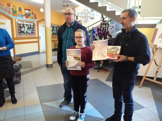 trzecie miejsce zajął Hubert Bąk z klasy VI, a wyróżnienie przypadło Katarzynie