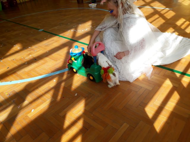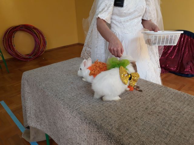 się jednak sztuczki wykonywane przez wytresowane króliki rasy ''baranek'', które można było