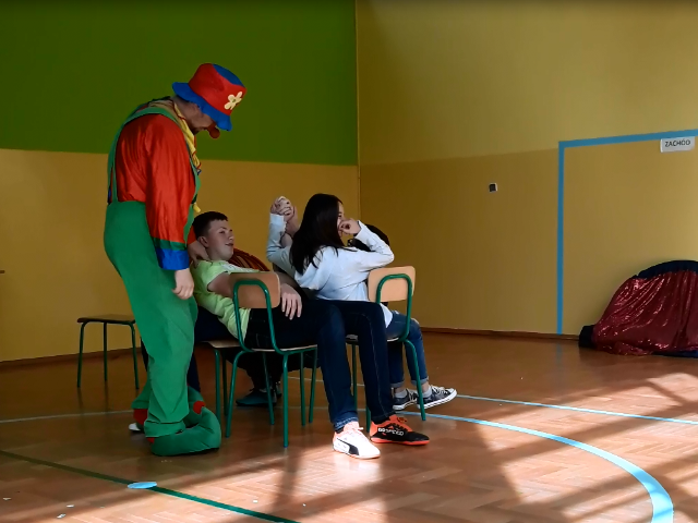 uczniów wybranych spośród widowni prezentował pełne humoru sztuczki. Występ