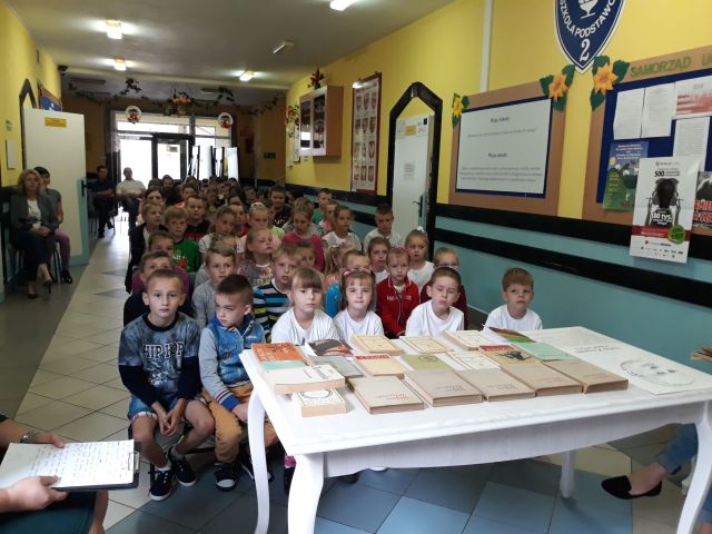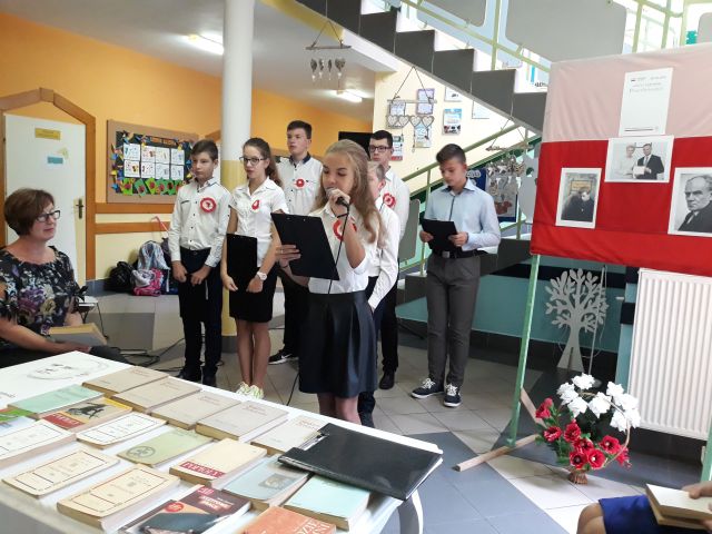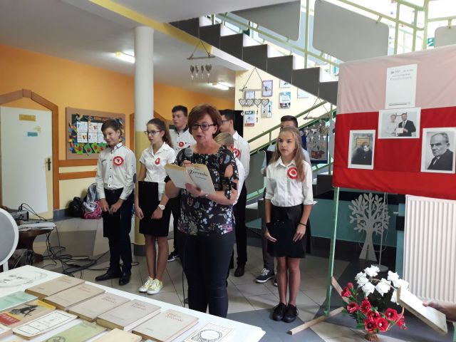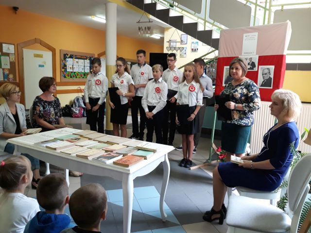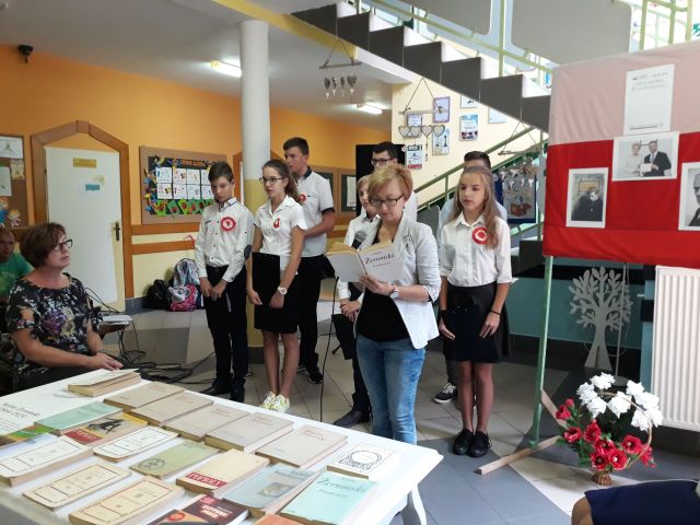 Po zakończeniu czytania, Pani Dyrektor posumowała spotkanie. Młodsi i starsi doskonale pamiętali szczegóły z życia Cezarego Baryki, wykazali się także świetną znajomością dat i faktów z historii polskiej.