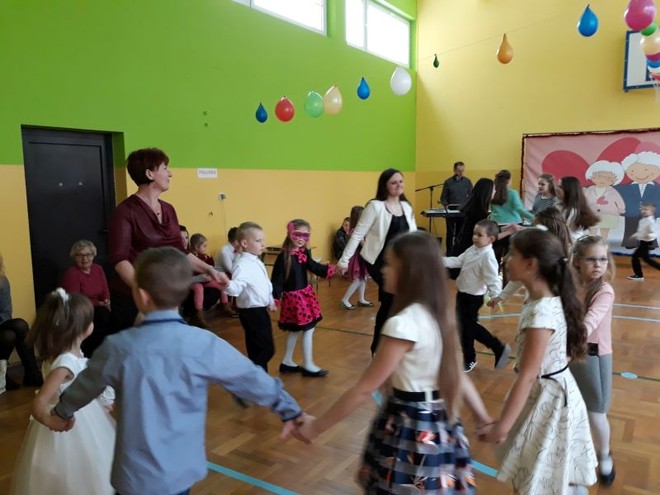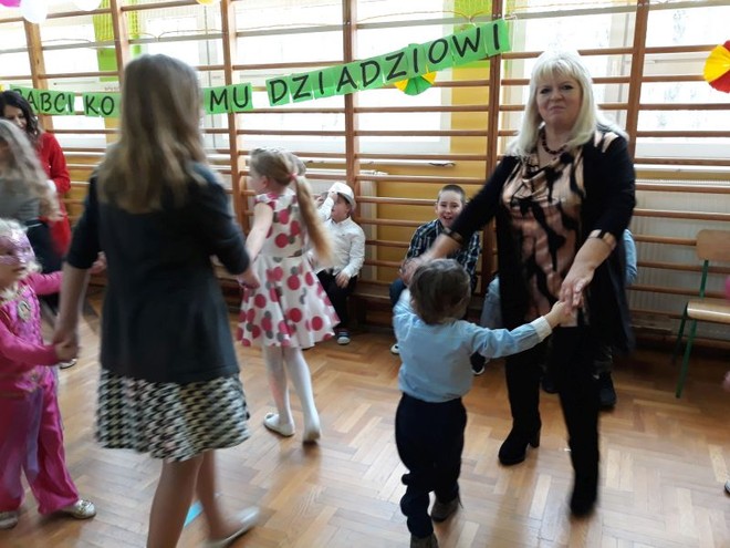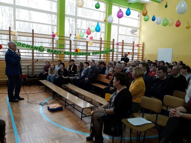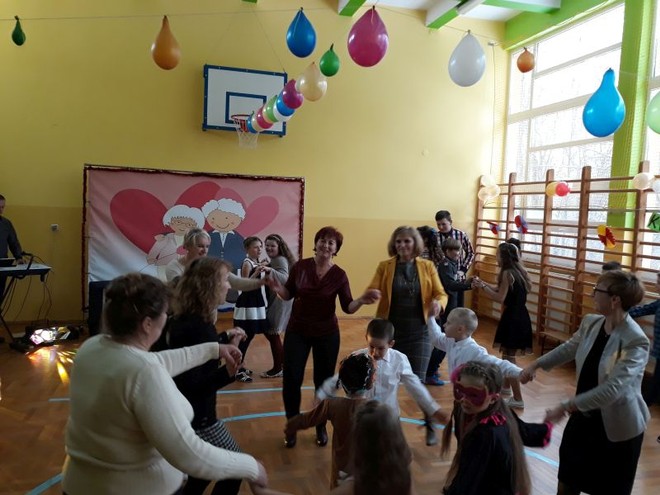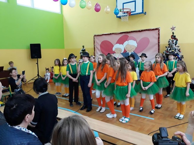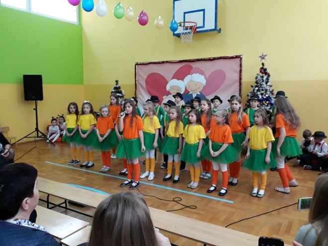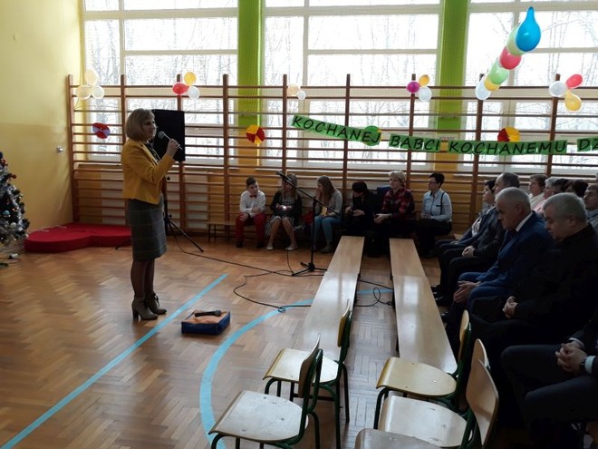 20 stycznia miała miejsce w naszej szkole impreza środowiskowa z okazji Dnia Babci i Dziadka połączona z zabawą choinkową. O ważności tego święta i wartościach rodzinnych, jakie są promowane w naszej szkole przypomniała na początku spotkania Pani Dyrektor- Barbara Janusz. Wspomniała o nierozerwalności związku małżeńskiego, a także o pozytywnych aspektach rodzin wielopokoleniowych, w których Babcia i Dziadek odgrywają ogromną rolę w przekazywaniu tradycji i wychowaniu młodego pokolenia. Babcie i Dziadkowie scalają bowiem pokolenia, są łącznikiem między przeszłością rodziny i jej obecnym życiem.