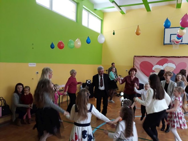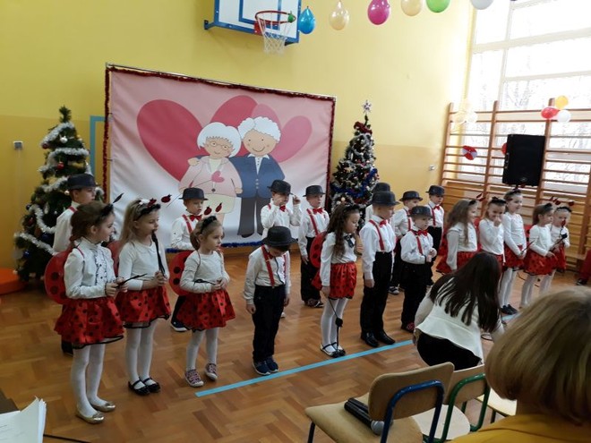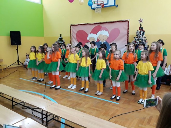 Dzieci z Oddziału Przedszkolnego oraz uczniowie z klasy I i III uświetniły uroczystość pięknymi wierszami oraz żywiołowo zaprezentowały umiejętności wokalne i taneczne. Duma malowała się na twarzach Dziadziusiów, a w oczach niejednej Babci pojawiły się łzy wzruszenia, kiedy z głębi dziecięcych serc słowa płynęły słowa wyrażające miłość i wdzięczność za troskę i ogromną cierpliwość okazywaną im każdego dnia przez tych członków rodziny. Dzieci nie szczędziły ciepłych słów, by podkreślić, że Babcia i Dziadzio są dla nich ważnymi osobami, którymi lubią spędzać czas, chętnie dzielą się z nimi swoimi dziecięcymi radościami i smutkami, zawsze mogą liczyć na ich zrozumienie i wsparcie.