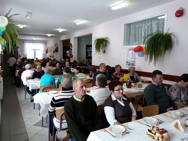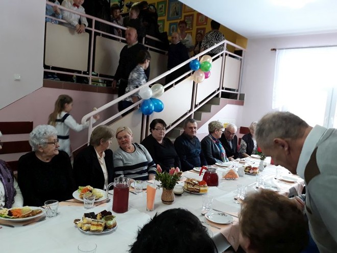 Na uroczystość przybyli również zaproszeni goście: Wójt Gminy Domaradz- Pan Jan Kędra, Proboszcz parafii Golcowa- ks. Tadeusz Pikor, Sołtys wsi Golcowa- Pan Andrzej Wrona. Po zakończonych występach uczniów, nagrodzonych gromkimi brawami przez widzów wszyscy zebrani ochoczo zasiedli przy pysznym obiedzie i słodkim poczęstunku przygotowanym przez Radę Rodziców we współpracy z Paniami pracującymi w kuchni. Ostatnią częścią spotkania była przednia zabawa przy dźwiękach skocznej muzyki, która trwała do późnych godzin popołudniowych.
