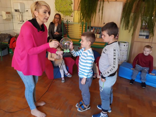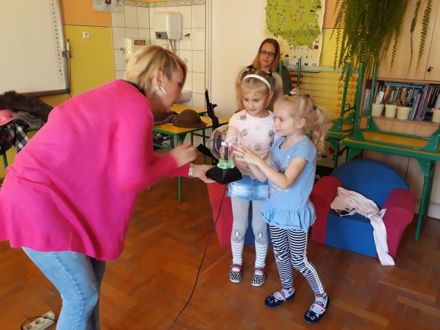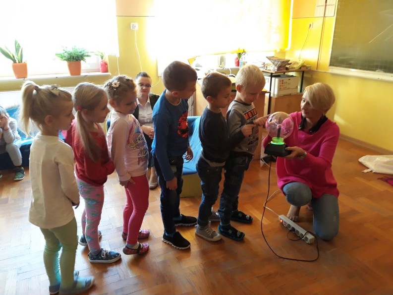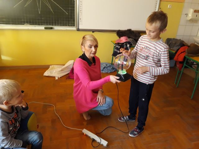 Uczniowie klas 0-II uczestniczyli z kolei w lekcji czytelniczej, której motywem przewodnim było szukanie odpowiedzi na pytanie, co to jest ekologia i jak dbać o przyrodę. Rozszerzyli swoją wiedzę o informacje związane z ekologią, przypomnieli sobie, ile lat niektóre materiały potrzebują, aby rozłożyć się całkowicie w ziemi. Poznali również poznali sposoby oszczędzania prądu i wody. Podczas zajęć zaprezentowana została także humorystyczna wersja baśni „Czerwony Kapturek” – uczniowie wchodzili w role poszczególnych postaci i odgrywali baśniowe scenki. Na zakończenie zajęć zaprezentowana została kula plazmowa, składająca się ze sferycznej szklanej bańki wypełnionej rozrzedzonym gazem oraz centralnej elektrody, która często nazywana jest „cewką Tesli” od nazwiska Nikoli Tesli, wynalazcy lampy.