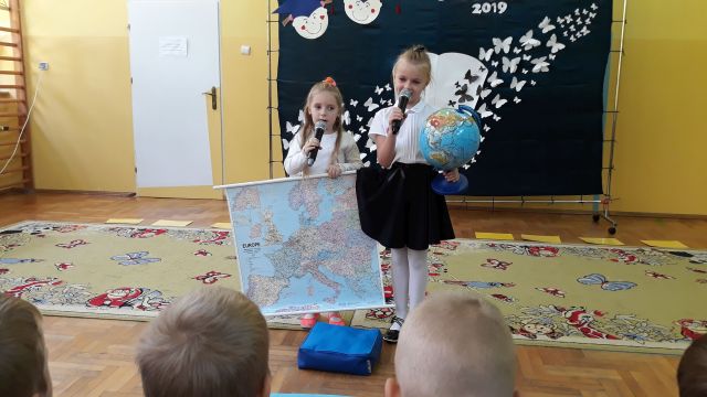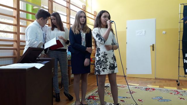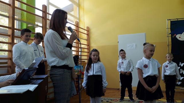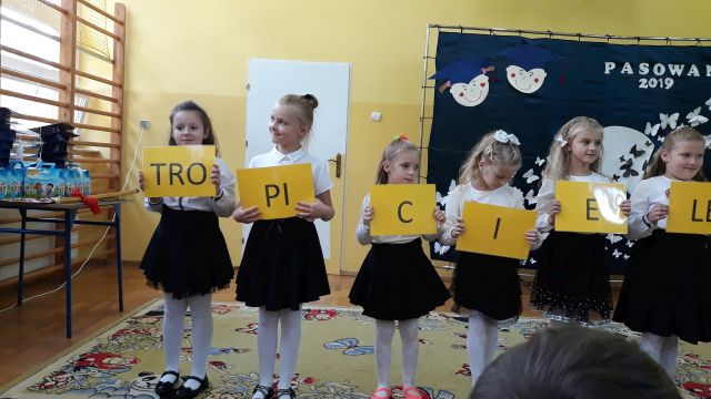 Uczniowie klasy pierwszej wcielili się w role – „Tropicieli Wiedzy”. Przedstawili program artystyczny, w którym udali się w podróż, by odkrywać tajemnice każdej z nauk. Swoim występem udowodnili, że naukę trzeba zdobywać, pogłębiać i pielęgnować, czego efektem będą medale. Recytując wiersze, tańcząc i śpiewając piosenki pięknie się zaprezentowali i zostali nagrodzeni gromkimi brawami.