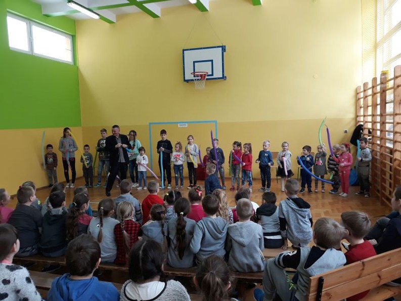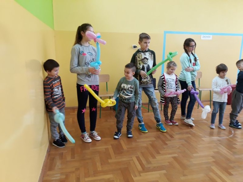 wykonywaniu sztuczek. Śmiechu było co niemiara. Uczniowie mieli okazję, aby