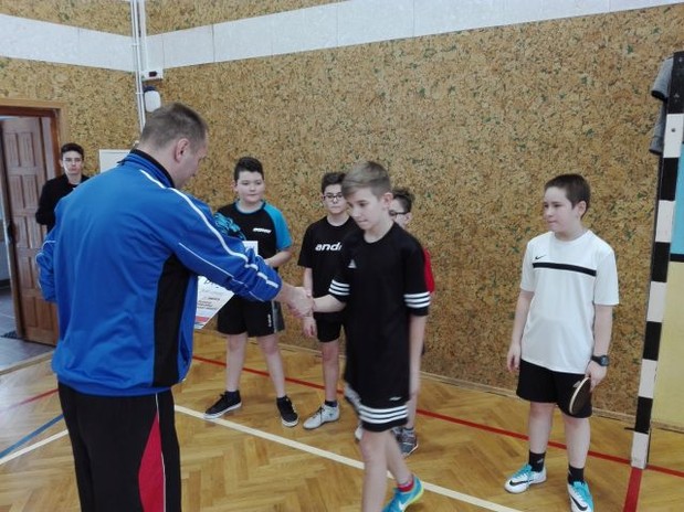 w Turzym Polu 3:2. W ostatniej rundzie w meczu o drugie miejsce znów na naszej drodze stanęła drużyna z Haczowa. Gra naszych chłopaków wyglądała znacznie lepiej w porównaniu z tym, co prezentowali w pierwszym spotkaniu. Wygrali pojedyncze sety, jednak umiejętności kolegów z Haczowa oraz sprzęt jakim dysponowali nasi rywale w końcu wzięły górę. Mimo, że ostateczny wynik 3:0 wypadł na naszą niekorzyść, to mecz był bardziej wyrównany, a Kuba i Paweł momentami dawali pokaz pięknego tenisa stołowego. Ostatecznie drużyna chłopców zajęła III miejsce w turnieju. Gratulujemy i życzymy dalszych sukcesów.
