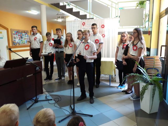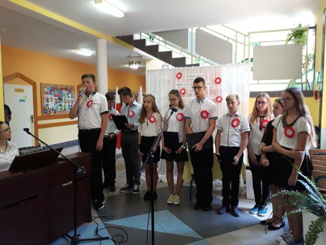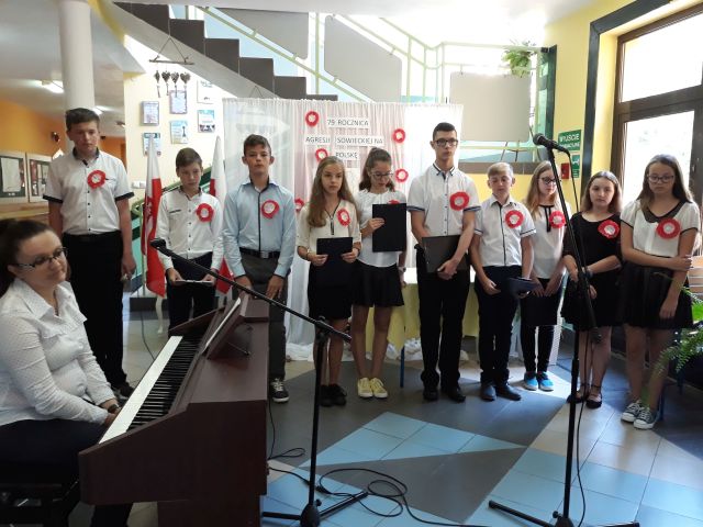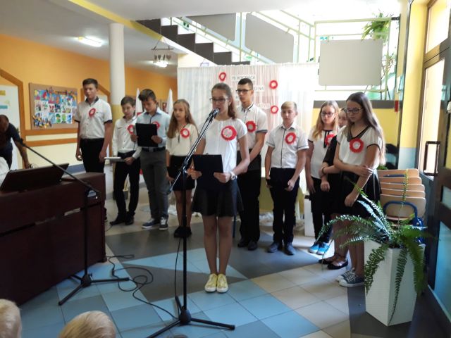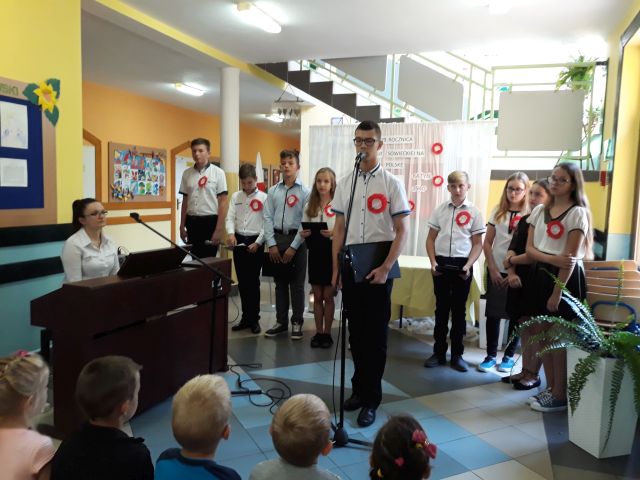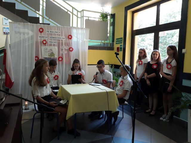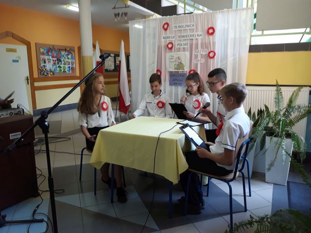 Uczniowie realizując zadania związane z obchodami stulecia niepodległości Polski przygotowali apel z okazji 79 rocznicy agresji radzieckiej na Polskę. W ramach realizacji projektu Szkoły Młodych Patriotów starają się pamiętać o ważnych dla nas Polaków rocznicach i osobach. Uroczystość przygotowali uczniowie klasy ósmej pod opieką Pani Elżbiety Jakubowicz oraz Pana Stanisława Janowskiego. W montażu słowno-muzycznym przypomnieli oni historię tamtych wydarzeń i przybliżyli młodszym kolegom postać Wacława Janusza – policjanta pochodzącego z Golcowej, zamordowanego w Miednoje. Na podsumowanie zebranym przypomniano o akcji „Katyń – ocalić od zapomnienia…”,