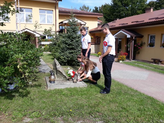 w którą aktywnie włączyła się nasza szkoła. Zapalone znicze oraz kwiaty przy kamieni poświęconemu pamięci Wacława Janusza dobrze o tym świadczą. Na koniec szkolna społeczność uczciła minutą ciszy pamięć poległych, a przedstawiciele samorządu uczniowskiego zapalili znicze ku czci wszystkich zamordowanych za walkę o wolność Polski.