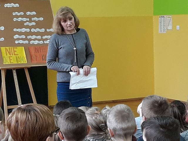 w sytuacjach zagrożenia. Apelowano także, aby uczniowie nie byli obojętni na cudzą krzywdę. Na koniec zebrani zostali zapoznani z zasadami mądrego postępowania.