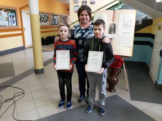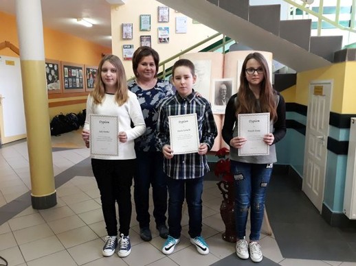 I kategoria – Michał Sołtys (kl. IV), Hubert Bąk (kl. IV), Natalia Dytko (kl. V), Julia Herbut (kl. V), Paweł Kobiałka (kl. VI), II kategoria – Aleksandra Bacior (kl. VII), Paulina Dytko (kl. VII), Maciej Wolanin (kl. VII). Eliminacje szkolne miały na celu wybranie uczniów, którzy będą reprezentować naszą szkołę w gminnym etapie. Wszyscy uczestnicy prezentowali wysoki poziom wykonania, decyzja o wyborze nie była łatwa. Ostatecznie zadecydowała perfekcyjna znajomość tekstu. Ilość uczniów z II kategorii była wystarczająca, ale mimo to uczniowie zaprezentowali swoje umiejętności recytatorskie i interpretacyjne.
