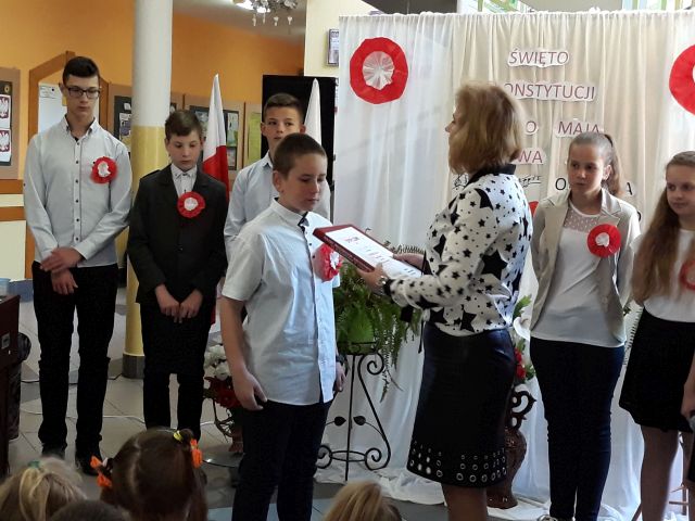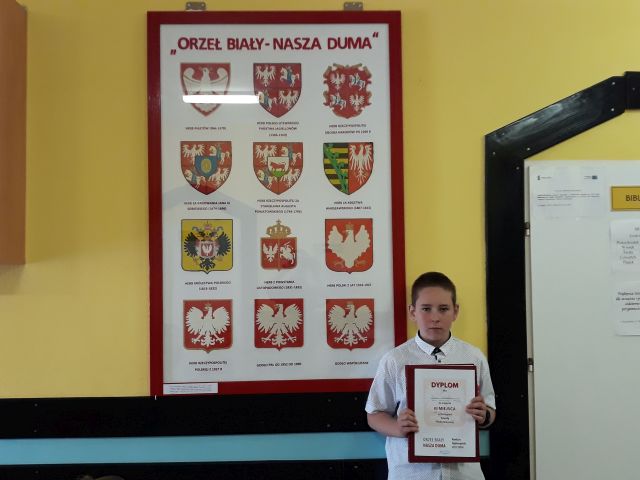 Laureatem w kategorii I – uczniowie klas IV-VII szkół podstawowych został Paweł Kobiałka z klasy VI, którego niezwykle oryginalna praca przedstawiająca historię wizerunku naszego godła, została