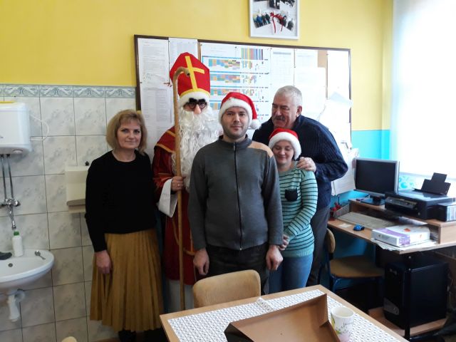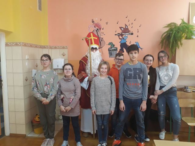 brodę, wąsy i czapkę czerwoną na bok przekrzywioną.