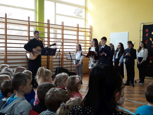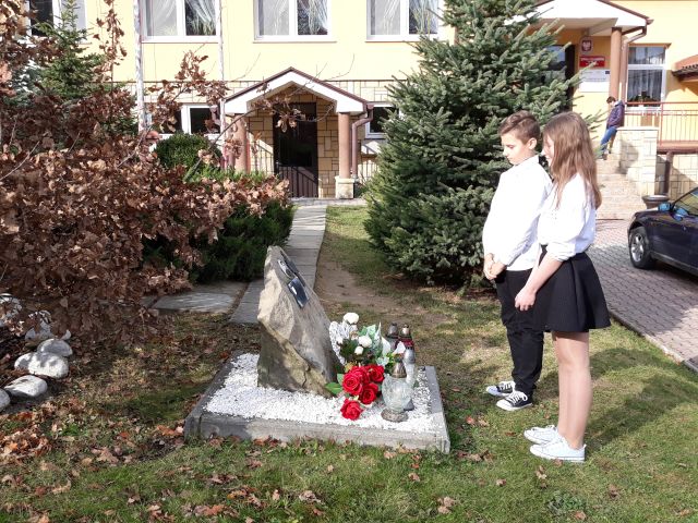 Druga część zawierała treści podkreślające potrzebę pamięci o zmarłych, zarówno tych bliskich z rodziny, jak i tych nieznanych, którzy oddali życie za naszą wolność. W trakcie apelu dwoje uczniów, w imieniu całej społeczności szkoły, zapaliło znicze przed pomnikiem patrioty Wacława Janusza, mieszkańca Golcowej, który zginął w Miednoje, walcząc w obronie Ojczyzny.