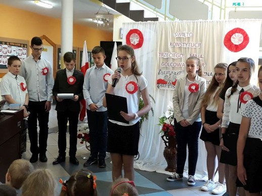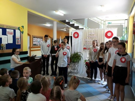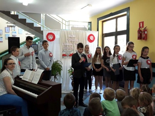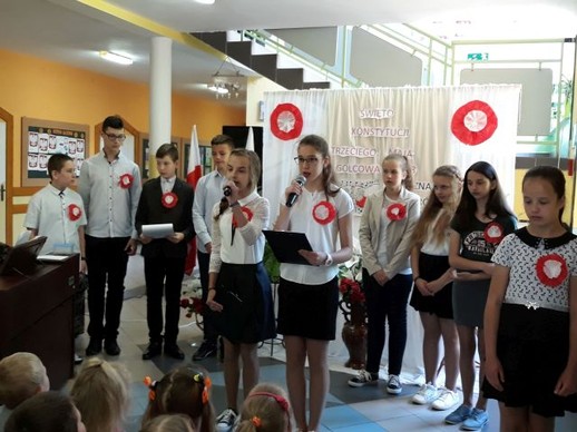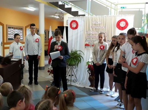 Realizując program wychowawczy szkoły, a szczególnie próbując kształtować wśród młodych ludzi właściwe postawy patriotyczne w naszej szkole odbyła się uroczysta akademia poświęcona upamiętnieniu kolejnej rocznicy uchwalenia Konstytucji 3 maja. Ciągła praca wychowawcza nauczycieli w ramach kształtowania postaw patriotycznych ma na celu: rozbudzanie w dzieciach poczucia odpowiedzialności za losy Ojczyzny; przygotowanie młodzieży do aktywnego działania na rzecz systematycznego rozwoju Ojczyzny; pogłębianie wiedzy o kraju ojczystym i jego historii; systematycznego wpajania młodzieży norm zachowania się w określonych sytuacjach; przestrzeganie prawa i moralnego postępowania w życiu, uczenia sumienności, rzetelności, obowiązkowości, prawdomówności, samokontroli, uczciwej, samodzielnej pracy i nauki, zachęcania do koleżeńskiej pomocy i wytrwałości w wysiłku, a także wpajania szacunku dla ludzi starszych i przełożonych. Piękna i patriotyczna uroczystość, związana z 227 rocznicą uchwalenia Konstytucji 3 Maja oraz z przypadającym w dniu 2 maja – świętu flagi państwowej. Akademia ta wpisana była również w obchody całoroczne w naszej placówce 100 rocznicy odzyskania przez Polskę niepodległości. Uczniowie klas szóstej i siódmej przygotowali w związku z tym wydarzeniem montaż słowno – muzyczny poświęcony jednej z najważniejszych ustaw w historii Polski. Uchwalona przez Sejm Wielki w 1791 r. Konstytucja była drugą na świecie i pierwszą w Europie ustawą tego typu. Autorami Konstytucji 3 Maja byli: Stanisław August Poniatowski, Ignacy Potocki i Hugo Kołłątaj. Polska stała się monarchią parlamentarną, zniesiono liberum veto, wolne elekcje oraz konfederacje. Znacznie wzmocniło to władzę państwową. Od tej pory pod opiekę prawa i rządu trafiała nie tylko szlachta, ale również mieszczanie i chłopi.