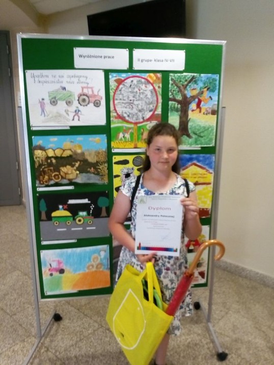 Na początku czerwca w Urzędzie Marszałkowskim w Rzeszowie spotkali się uczestnicy konkursu plastycznego pt. „Bezpiecznie na wsi mamy – upadkom zapobiegamy”. Organizatorem konkursu był KRUS Oddział Regionalny w Rzeszowie. Na konkurs napłynęło w sumie 2038 prac. Zwycięzcy zostali wyłonieni w dwóch kategoriach wiekowych klasy 0-III i IV-VII. Technika wykonania prac była dowolna. Uczestnicy konkursu zaprezentowali w swoich dziełach wiele oryginalnych pomysłów. Wśród laureatów znalazła się Aleksandra Potoczna z klasy czwartej. Razem ze swoim opiekunem Panem Stanisławem Janowskim odebrała dyplom oraz cenne nagrody. Gratulujemy Oli wspaniałego sukcesu. W Gali uczestniczyli również przedstawiciele policji i ratownicy medyczni. Podczas swoich wystąpień zwracali oni uwagę, że częstą przyczyną wypadków jest nieuwaga rodziców.