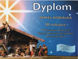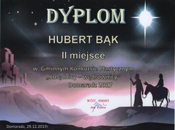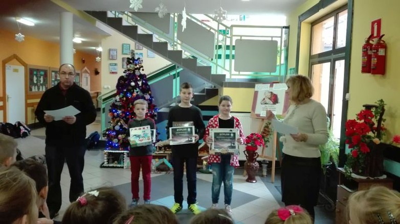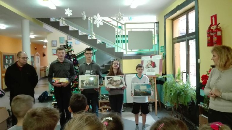 Gmina Komisja Konkursowa nagrodziła uczestników etapu gminnego Konkursu Plastycznego „Kolędnicy-wędrownicy”. Temat Konkursu „KOLĘDNICY–WĘDROWNICY”, dotyczył dawnej oraz obecnej tradycji kolędowania. Należało w pracy konkursowej przedstawić całe sceny wielopostaciowe, lub poszczególne – ulubione postacie kolędujące. Organizator pragnął przypomnieć dzieciom o ciekawej tradycji, która obecnie powoli odchodzi w zapomnienie. Komisja w powyższym konkursie przyznała I miejsce Jakubowi Potocznemu z klasy VII, II miejsce przypadło Hubertowi Bąkowi – z klasy IV, a III miejsce stało się udziałem Aleksandry Potocznej również z klasy IV.