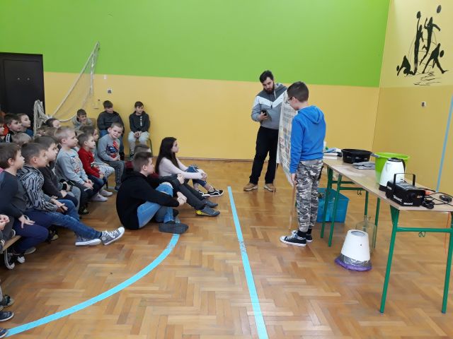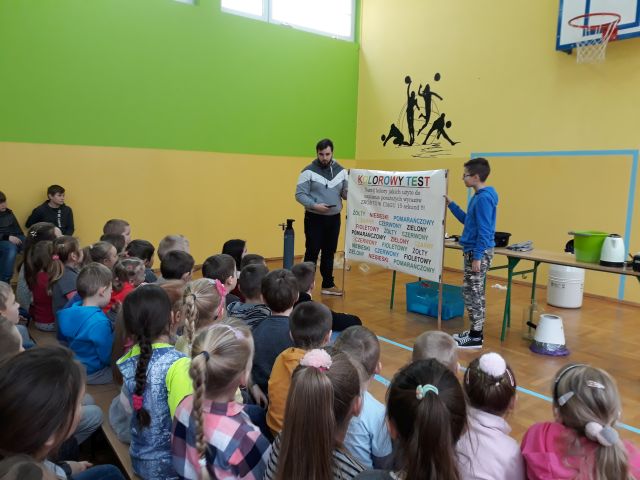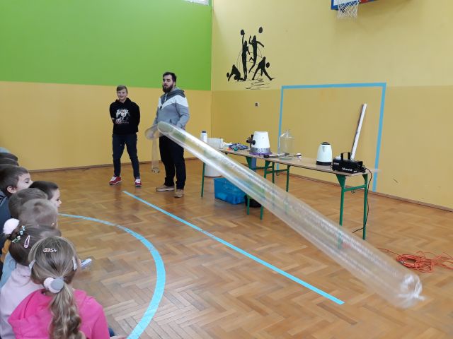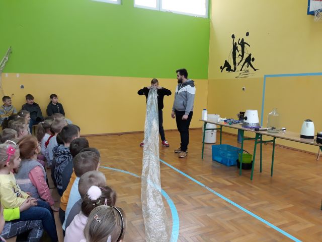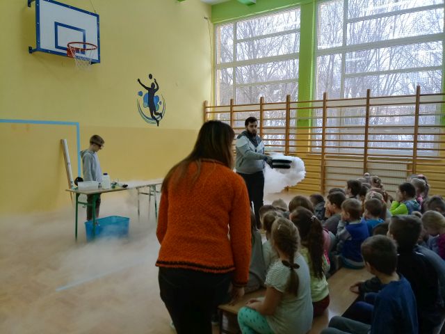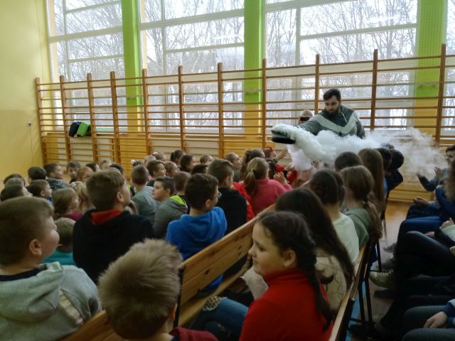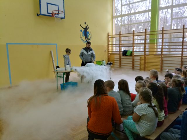 W dniu 8 stycznia 2020 uczniowie naszej szkoły po raz kolejny mieli przyjemność uczestniczyć w niecodziennej lekcji chemii i fizyki. Jej tematem były gazy, m. in. hel, azot i wodór. Dzieci poprzez świetną zabawę mogły nauczyć się wielu skomplikowanych procesów chemicznych. Uczniowie naszej szkoły analizowali i wyciagali wnioski z przeprowadzanych doświadczeń. Podejmowali również próby samodzielnego wykonywania eksperymentów. Dzięki niezwykłym zajęciom dzieci otrzymały niepowtarzalną okazję do rozwijania zainteresowań zjawiskami chemicznymi. Uczniowie mieli możliwość kształtowania umiejętności krytycznego myślenia, myślenia przyczynowo-skutkowego oraz rozszerzania horyzontów myślowych. Chociaż niektóre eksperymenty mogły wydawać się trudne, to dawały dzieciom okazję do odkrywania i zgłębiania fascynującego świata przyrody i techniki, a wiedza i zdobyte umiejętności mogą stać się inspiracją i pomostem do wiedzy zdobywanej na kolejnych szczeblach edukacji.
