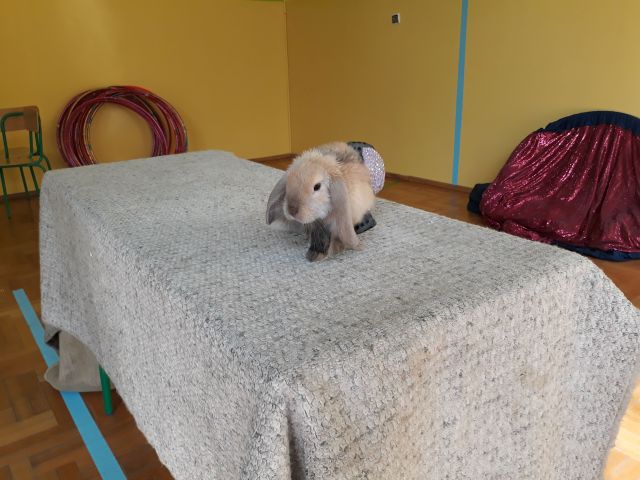się jednak sztuczki wykonywane przez wytresowane króliki rasy ''baranek'', które można było