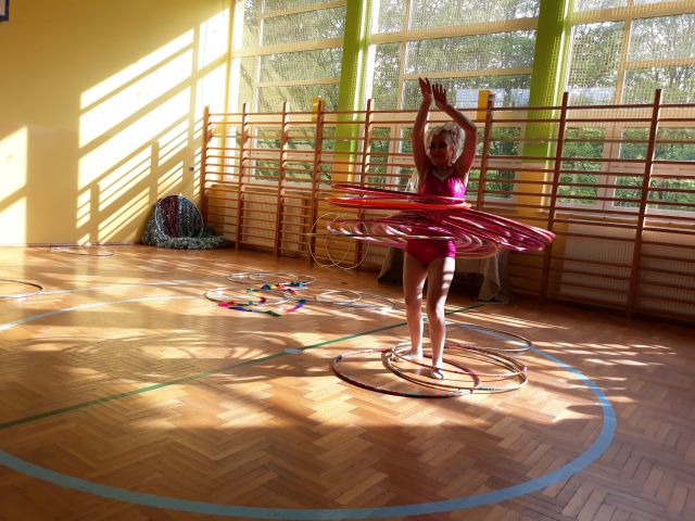 kręcenia hula-hopem. Pokaz uatrakcyjniały piękne, kolorowe oraz błyszczące