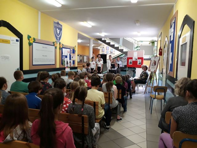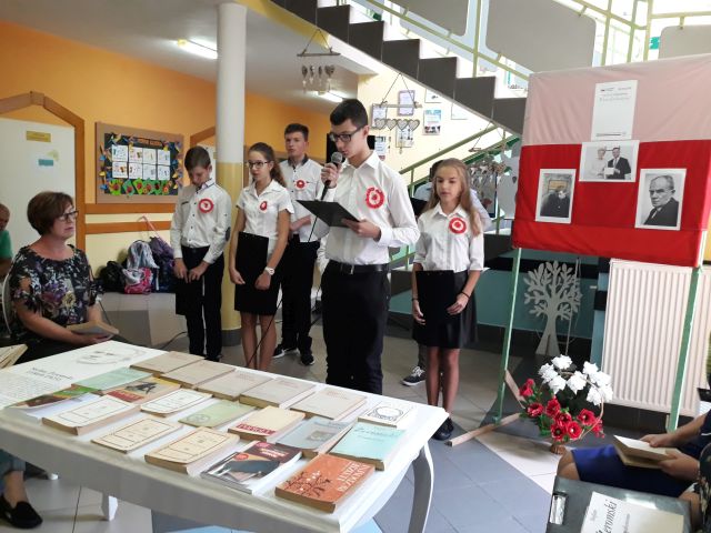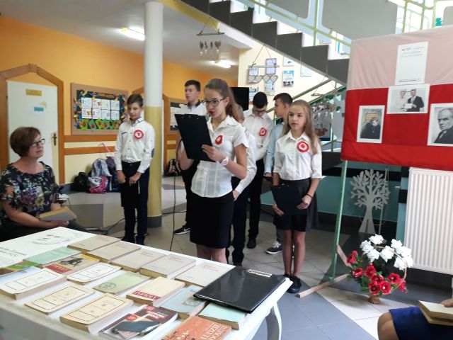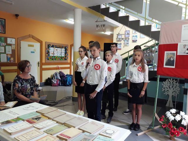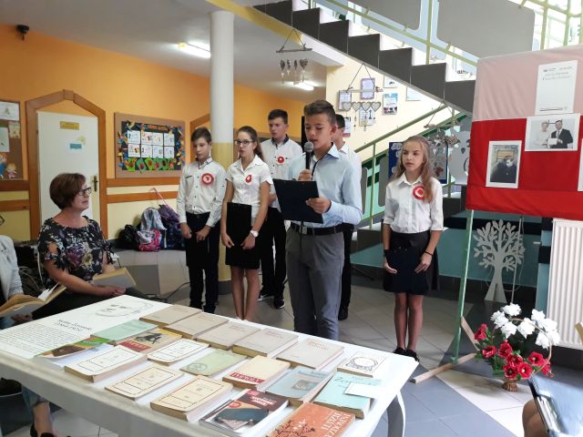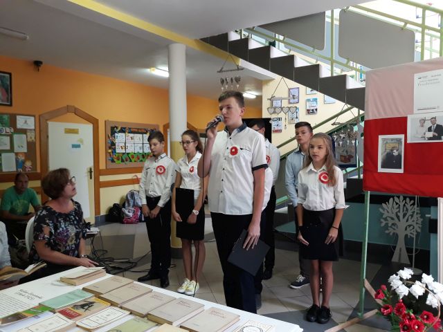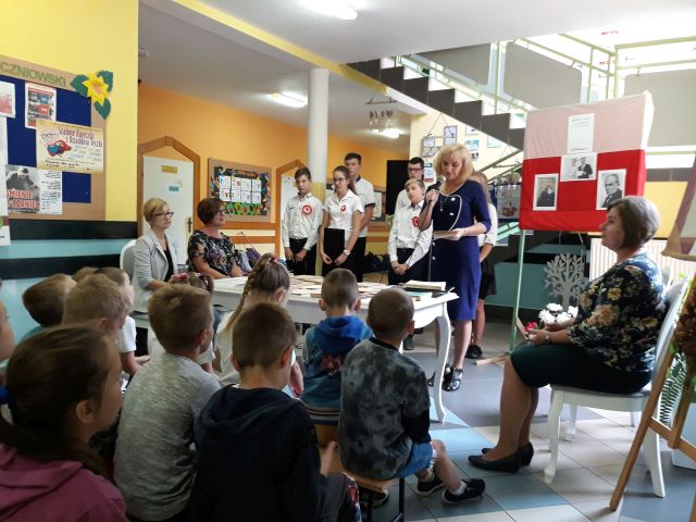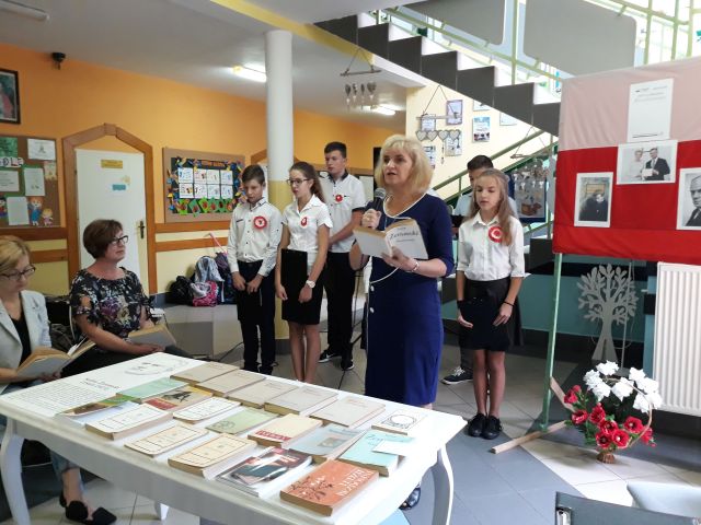 Po zakończeniu czytania, Pani Dyrektor posumowała spotkanie. Młodsi i starsi doskonale pamiętali szczegóły z życia Cezarego Baryki, wykazali się także świetną znajomością dat i faktów z historii polskiej.