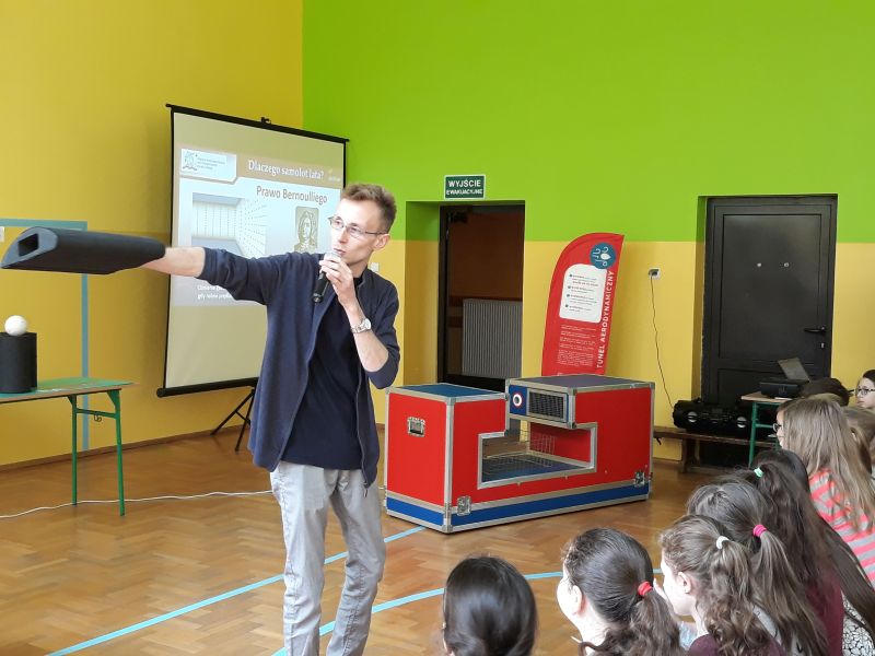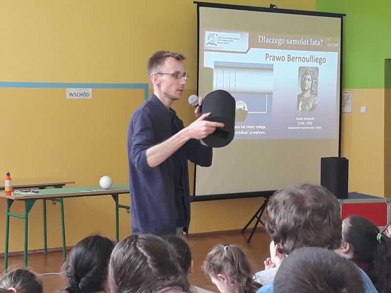 18 kwietnia odbył się wykład ,,Odlotowa Fizyka” przedstawiający w sposób interaktywny zjawiska i prawa fizyki wykorzystywane w lotnictwie. Jego celem było rozwijanie wśród młodzieży zainteresowania naukami ścisłymi i lotnictwem. Umożliwiał również zrozumienie otaczającego świata poprzez obserwacje.