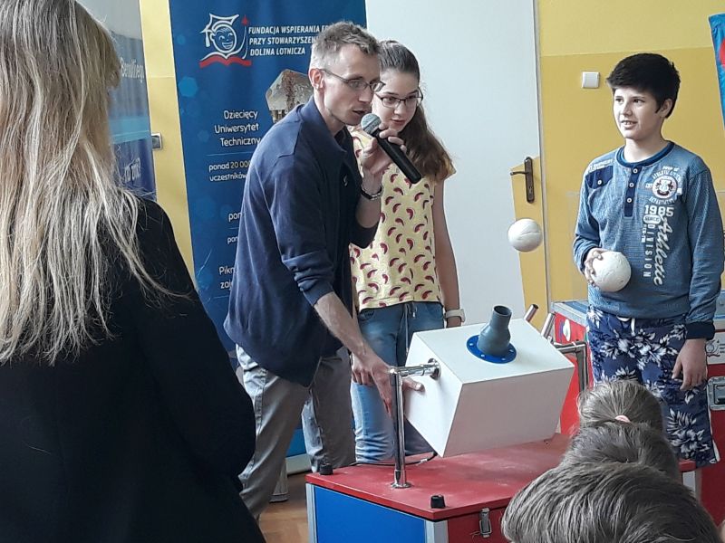 Nasza Szkoła zaprosiła Dziecięcy Uniwersytet Techniczny Wyjazdowy do przeprowadzenia wykładu i zajęć warsztatowych. Jako gospodarz zajęć, do udziału w całym przedsięwzięciu w ramach integracji międzyszkolnej, włączyliśmy uczniów ze Szkoły Podstawowej Nr 2 w Domaradzu oraz z Zespołu Szkół w Golcowej.