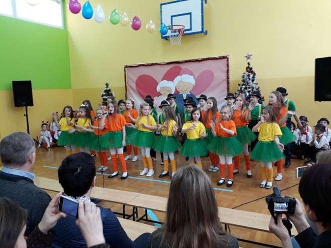Dzieci z Oddziału Przedszkolnego oraz uczniowie z klasy I i III uświetniły uroczystość pięknymi wierszami oraz żywiołowo zaprezentowały umiejętności wokalne i taneczne. Duma malowała się na twarzach Dziadziusiów, a w oczach niejednej Babci pojawiły się łzy wzruszenia, kiedy z głębi dziecięcych serc słowa płynęły słowa wyrażające miłość i wdzięczność za troskę i ogromną cierpliwość okazywaną im każdego dnia przez tych członków rodziny. Dzieci nie szczędziły ciepłych słów, by podkreślić, że Babcia i Dziadzio są dla nich ważnymi osobami, którymi lubią spędzać czas, chętnie dzielą się z nimi swoimi dziecięcymi radościami i smutkami, zawsze mogą liczyć na ich zrozumienie i wsparcie.