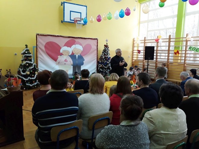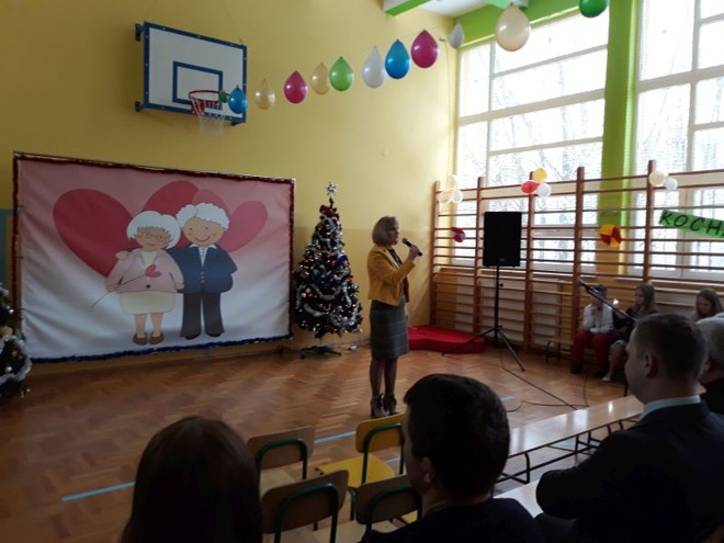 20 stycznia miała miejsce w naszej szkole impreza środowiskowa z okazji Dnia Babci i Dziadka połączona z zabawą choinkową. O ważności tego święta i wartościach rodzinnych, jakie są promowane w naszej szkole przypomniała na początku spotkania Pani Dyrektor- Barbara Janusz. Wspomniała o nierozerwalności związku małżeńskiego, a także o pozytywnych aspektach rodzin wielopokoleniowych, w których Babcia i Dziadek odgrywają ogromną rolę w przekazywaniu tradycji i wychowaniu młodego pokolenia. Babcie i Dziadkowie scalają bowiem pokolenia, są łącznikiem między przeszłością rodziny i jej obecnym życiem.