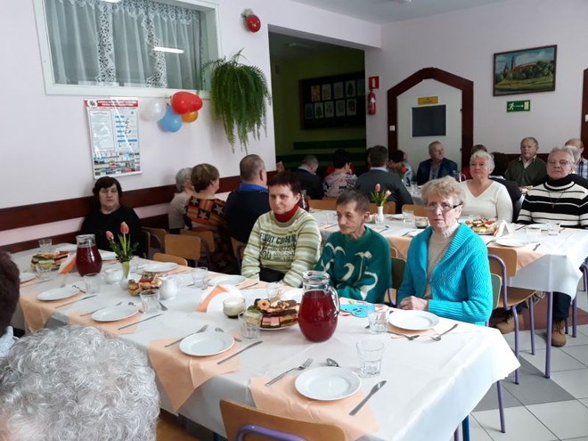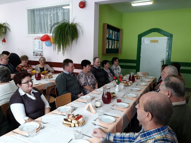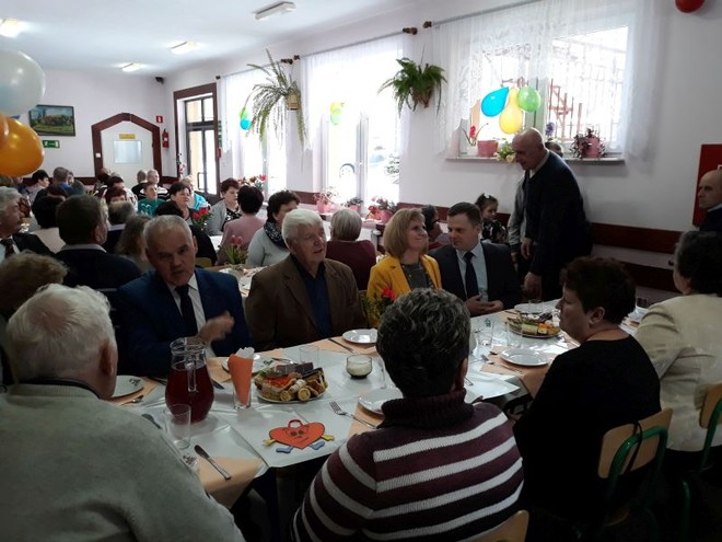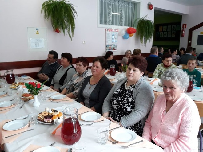 Na uroczystość przybyli również zaproszeni goście: Wójt Gminy Domaradz- Pan Jan Kędra, Proboszcz parafii Golcowa- ks. Tadeusz Pikor, Sołtys wsi Golcowa- Pan Andrzej Wrona. Po zakończonych występach uczniów, nagrodzonych gromkimi brawami przez widzów wszyscy zebrani ochoczo zasiedli przy pysznym obiedzie i słodkim poczęstunku przygotowanym przez Radę Rodziców we współpracy z Paniami pracującymi w kuchni. Ostatnią częścią spotkania była przednia zabawa przy dźwiękach skocznej muzyki, która trwała do późnych godzin popołudniowych.