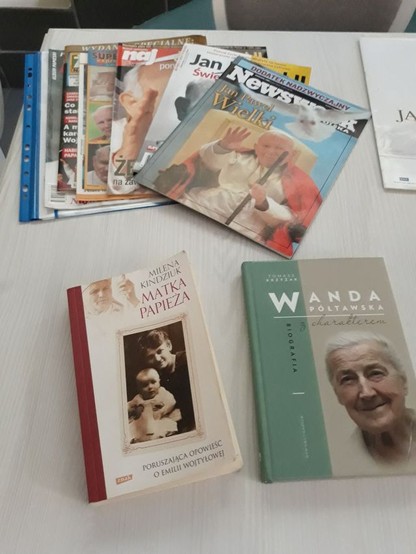 działalności Jana Pawła II poprzez gazetkę ścienną, wiele publikacji