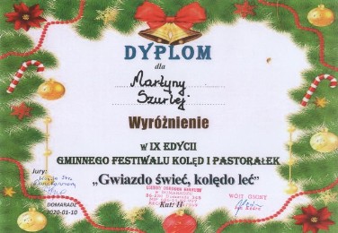 W konkursie Martyna Szurlej zdobyła wyróżnienie, natomiast Jowita Sikora wyśpiewała sobie 3 miejsce. Dziewczynki do występu przygotowała nauczycielka muzyki – Elżbieta Jakubowicz .
