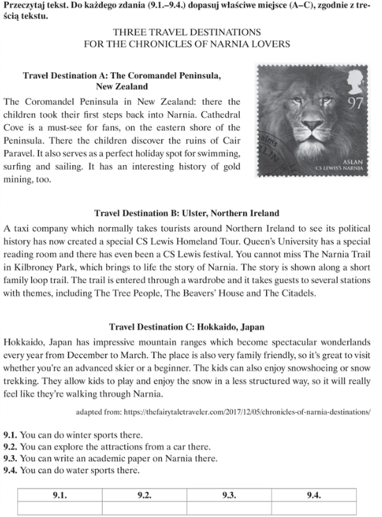 Przykładowe zadania egzaminacyjne z języka angielskiego