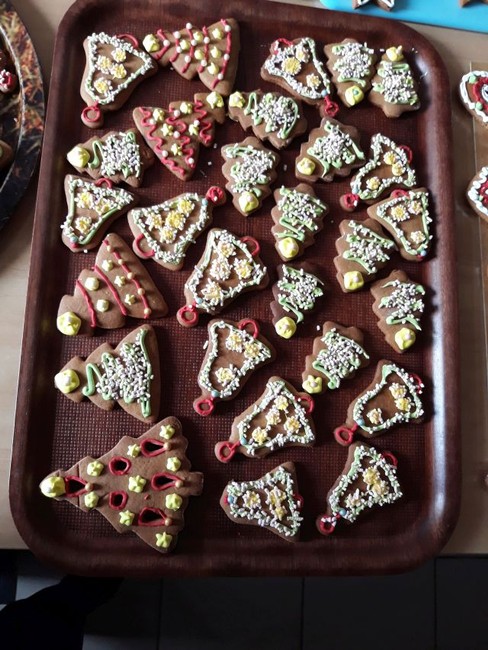 Własnoręcznie wykonane choinki, bombki, stroiki i ozdoby choinkowe, a także smakowite pierniczki, prawdziwe dzieła sztuki – schodziły jak „ciepłe bułeczki”. Zainteresowanych przyciągały misterne wykonanie, oryginalny wygląd, a także świąteczna kolorystyka bożonarodzeniowych ozdób, w których przygotowanie Mamy naszych uczniów wkładały całą swoją „duszę”.