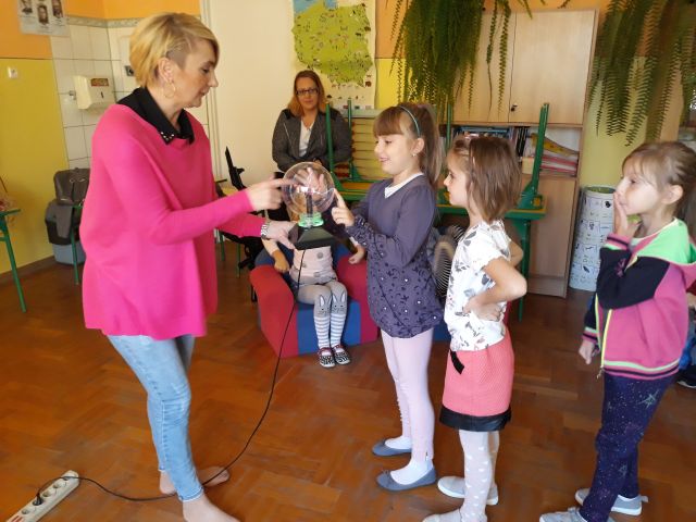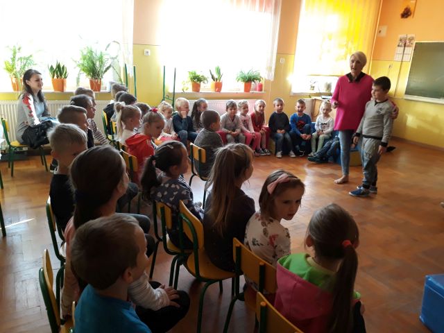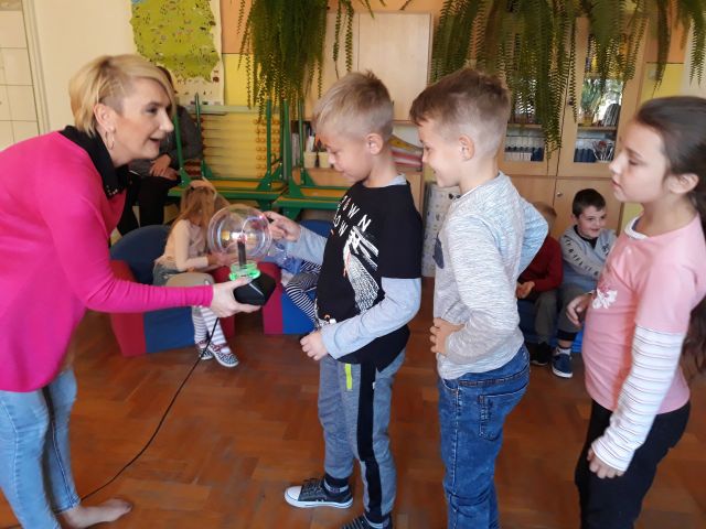 Uczniowie klas 0-II uczestniczyli z kolei w lekcji czytelniczej, której motywem przewodnim było szukanie odpowiedzi na pytanie, co to jest ekologia i jak dbać o przyrodę. Rozszerzyli swoją wiedzę o informacje związane z ekologią, przypomnieli sobie, ile lat niektóre materiały potrzebują, aby rozłożyć się całkowicie w ziemi. Poznali również poznali sposoby oszczędzania prądu i wody. Podczas zajęć zaprezentowana została także humorystyczna wersja baśni „Czerwony Kapturek” – uczniowie wchodzili w role poszczególnych postaci i odgrywali baśniowe scenki. Na zakończenie zajęć zaprezentowana została kula plazmowa, składająca się ze sferycznej szklanej bańki wypełnionej rozrzedzonym gazem oraz centralnej elektrody, która często nazywana jest „cewką Tesli” od nazwiska Nikoli Tesli, wynalazcy lampy.