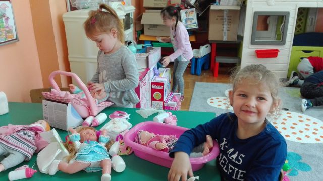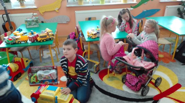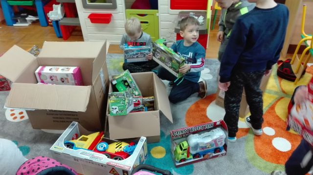 ogromna niespodzianka. Na środku naszego dywanu znajdowało się mnóstwo zabawek