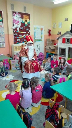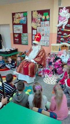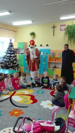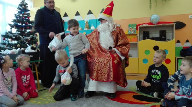 drzwiach pojawił się św. Mikołaj. Radości nie było końca. Cała sala powitała