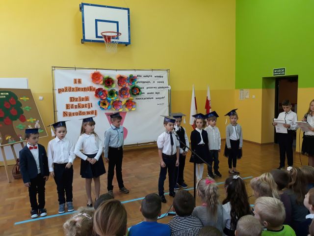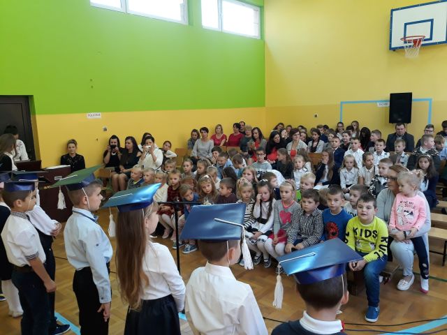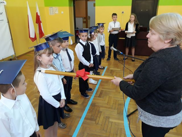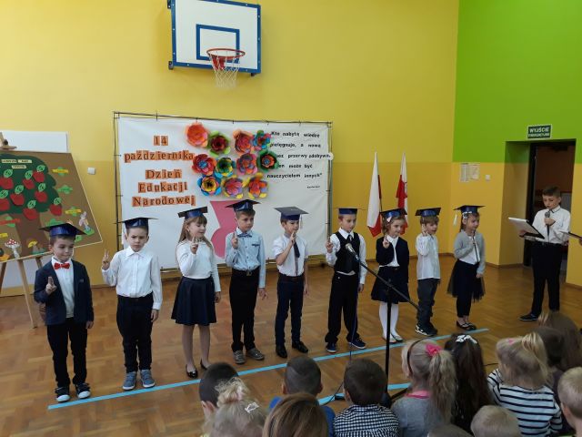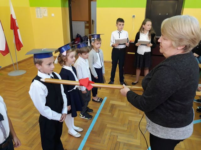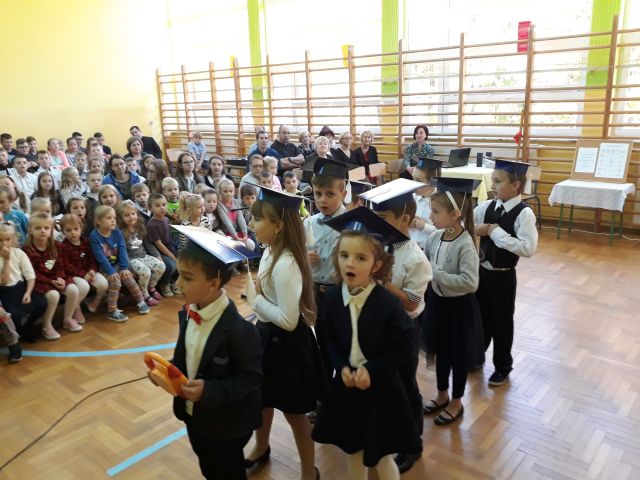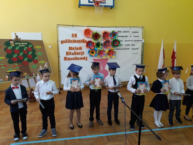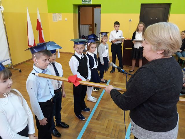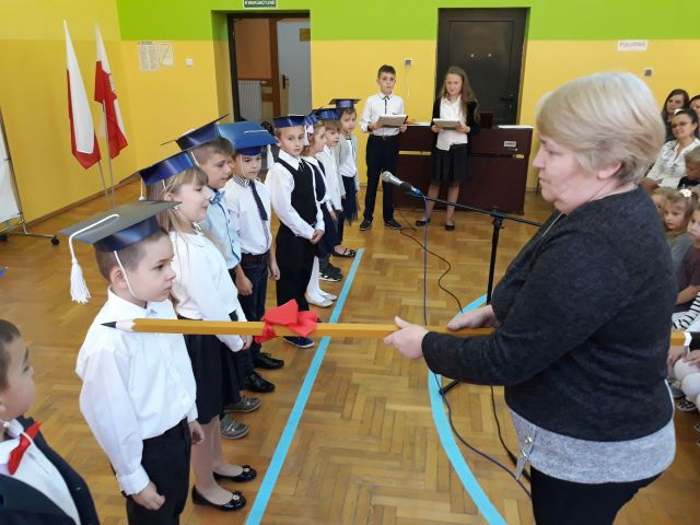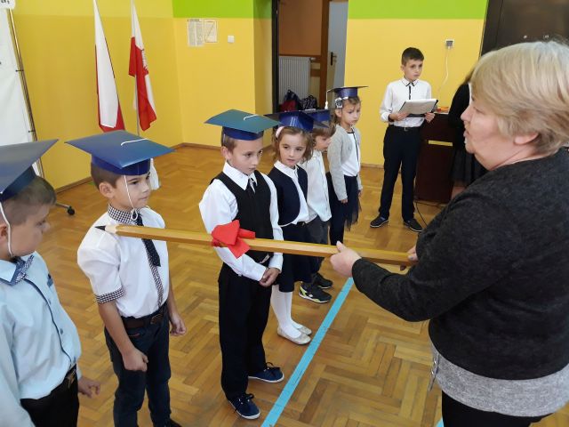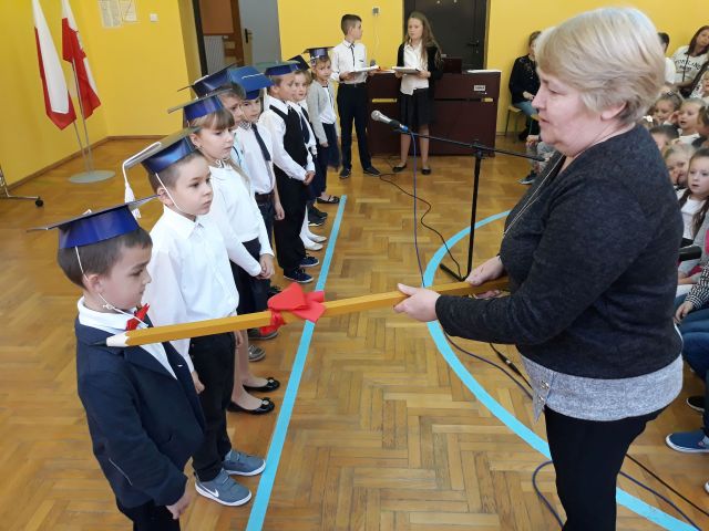 Tradycją w naszej szkole jest to, że właśnie w Dzień Edukacji Narodowej dokonujemy pasowania pierwszoklasistów. 15.10.2018 r. uczniowie klasy pierwszej złożyli uroczyste ślubowanie i zostali włączeni w poczet uczniów Szkoły Podstawowej Nr 2 w Golcowej. Przygotowany przez nich montaż słowno-muzyczny pokazał, że wiele już potrafią, chętnie współpracują ze sobą i umieją zdobytą wiedzę zastosować. Uczniowie potrafili dzielnie i wytrwale rozwiązywać postawione przed nimi zadania, a także wykazali się znajomością praw i obowiązków uczniów. Zaprezentowali się również jako mali patrioci, recytując wiersze oraz śpiewając piosenki. Występ naszych pierwszaków został nagrodzony gromkimi brawami. Życzymy Im wielu sukcesów i realizacji obietnic złożonych podczas ślubowania.