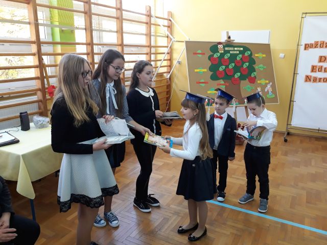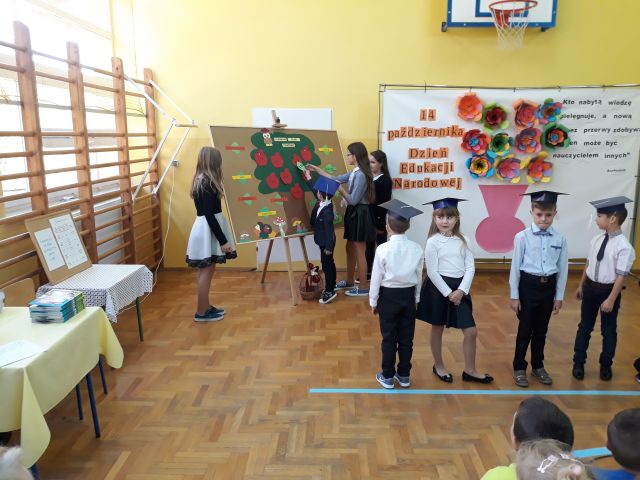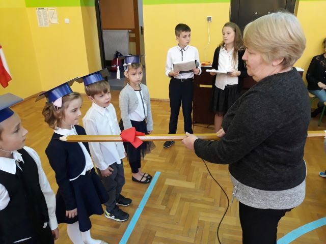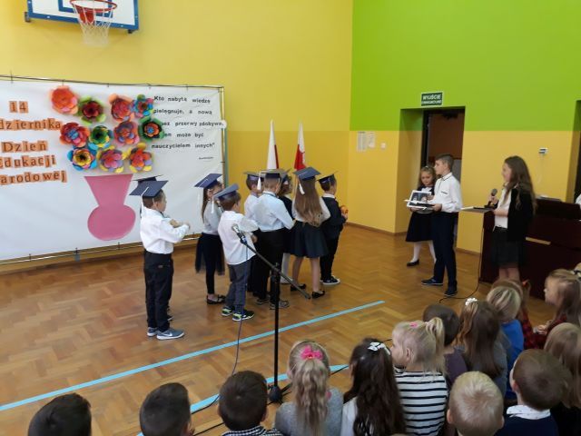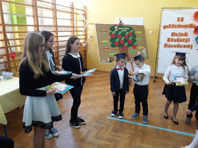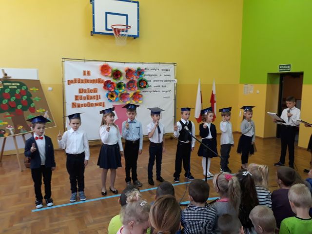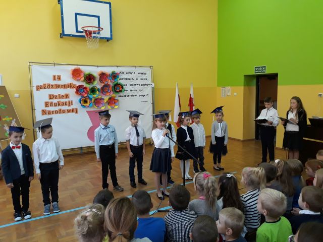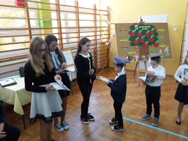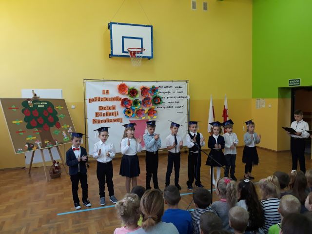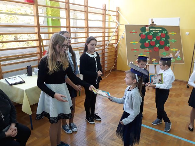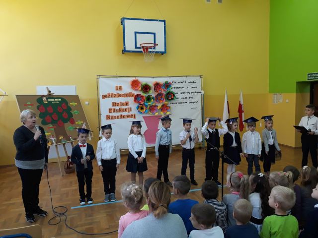 Tradycją w naszej szkole jest to, że właśnie w Dzień Edukacji Narodowej dokonujemy pasowania pierwszoklasistów. 15.10.2018 r. uczniowie klasy pierwszej złożyli uroczyste ślubowanie i zostali włączeni w poczet uczniów Szkoły Podstawowej Nr 2 w Golcowej. Przygotowany przez nich montaż słowno-muzyczny pokazał, że wiele już potrafią, chętnie współpracują ze sobą i umieją zdobytą wiedzę zastosować. Uczniowie potrafili dzielnie i wytrwale rozwiązywać postawione przed nimi zadania, a także wykazali się znajomością praw i obowiązków uczniów. Zaprezentowali się również jako mali patrioci, recytując wiersze oraz śpiewając piosenki. Występ naszych pierwszaków został nagrodzony gromkimi brawami. Życzymy Im wielu sukcesów i realizacji obietnic złożonych podczas ślubowania.
