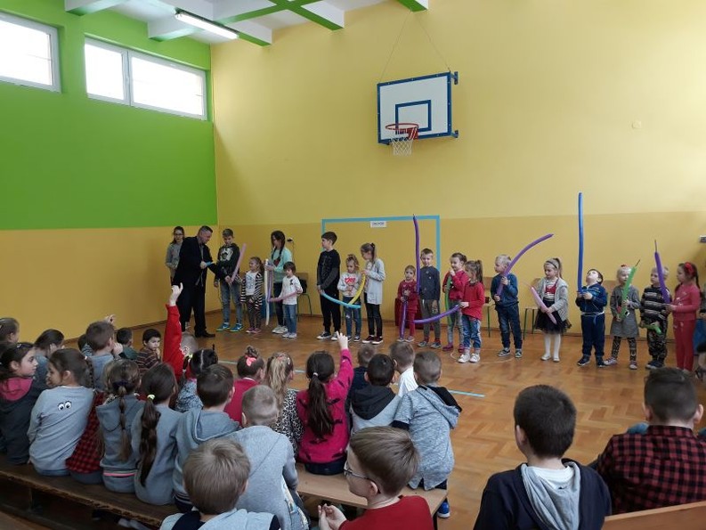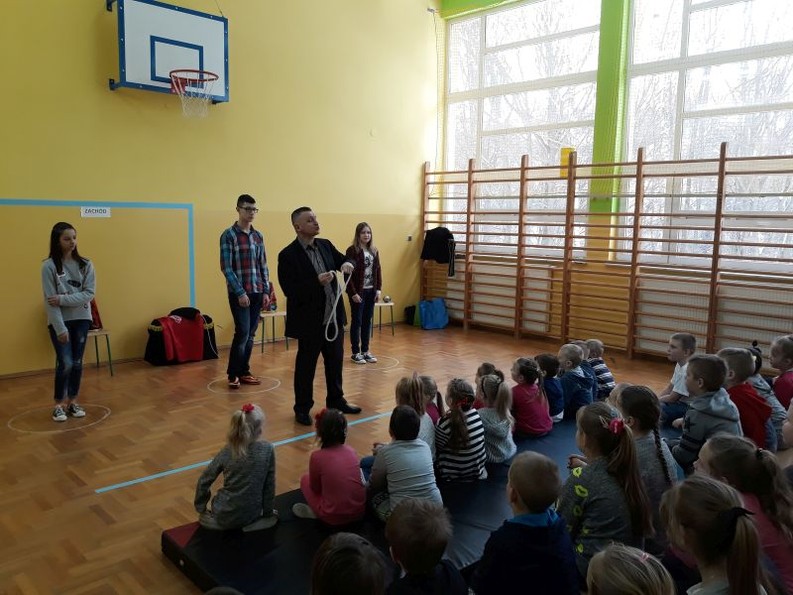 wykonywaniu sztuczek. Śmiechu było co niemiara. Uczniowie mieli okazję, aby