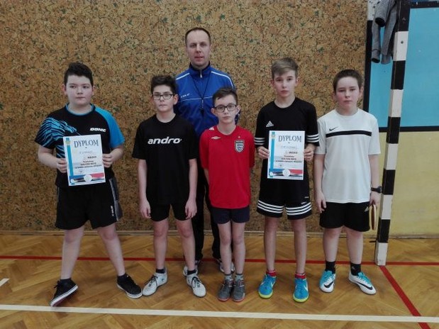 w Turzym Polu 3:2. W ostatniej rundzie w meczu o drugie miejsce znów na naszej drodze stanęła drużyna z Haczowa. Gra naszych chłopaków wyglądała znacznie lepiej w porównaniu z tym, co prezentowali w pierwszym spotkaniu. Wygrali pojedyncze sety, jednak umiejętności kolegów z Haczowa oraz sprzęt jakim dysponowali nasi rywale w końcu wzięły górę. Mimo, że ostateczny wynik 3:0 wypadł na naszą niekorzyść, to mecz był bardziej wyrównany, a Kuba i Paweł momentami dawali pokaz pięknego tenisa stołowego. Ostatecznie drużyna chłopców zajęła III miejsce w turnieju. Gratulujemy i życzymy dalszych sukcesów.
