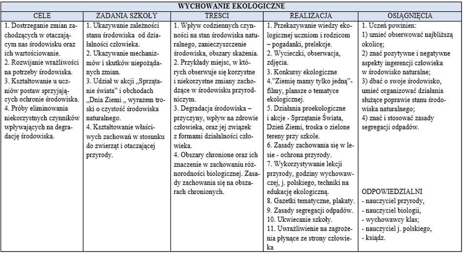 Dbałość o wszechstronny rozwój oraz kształtowanie osobowości ucznia jest jednym z nadrzędnych zadań szkoły, która staje się instytucją odpowiedzialną za formowanie młodego człowieka. W swoich założeniach, Szkoła uwzględnia indywidualne predyspozycje ucznia w sferze fizycznej, psychicznej, społecznej i aksjologicznej, ze szczególnym uwzględnieniem sytuacji rodzinnej, a także kwestie morlane. Zadaniem Szkoły jest stworzenie odpowiednich działań, które nie tylko będą oddziaływać na ucznia czy absolwenta, ale również na przyszłego dorosłego i dojrzałego człowieka.
