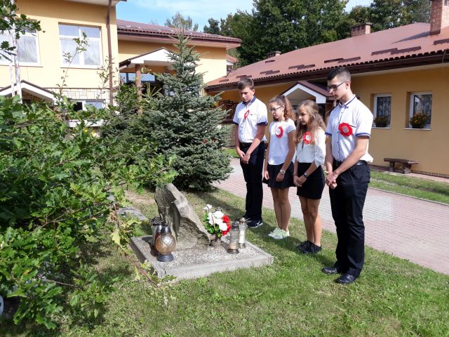 w którą aktywnie włączyła się nasza szkoła. Zapalone znicze oraz kwiaty przy kamieni poświęconemu pamięci Wacława Janusza dobrze o tym świadczą. Na koniec szkolna społeczność uczciła minutą ciszy pamięć poległych, a przedstawiciele samorządu uczniowskiego zapalili znicze ku czci wszystkich zamordowanych za walkę o wolność Polski.