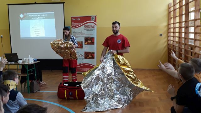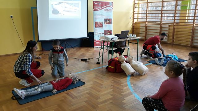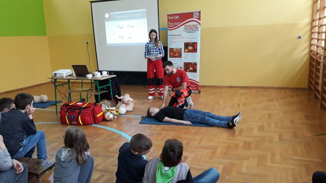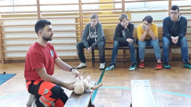 W szkoleniu brali udział wszyscy uczniowie, a także nauczyciele. Profesjonalni ratownicy przybliżyli tematy związane z: