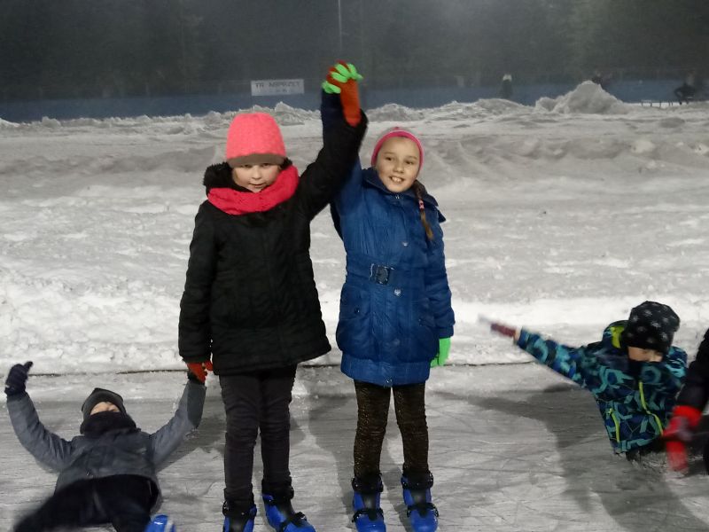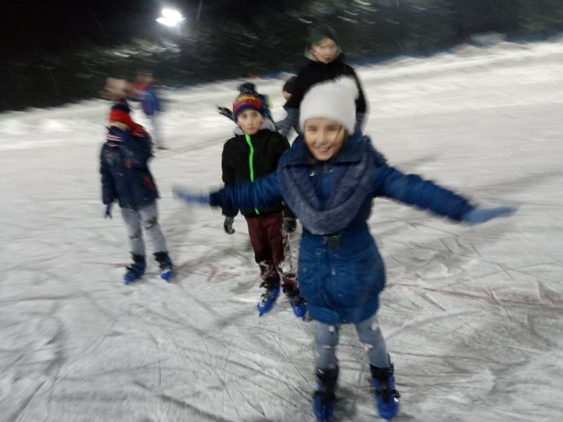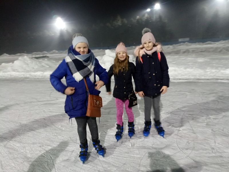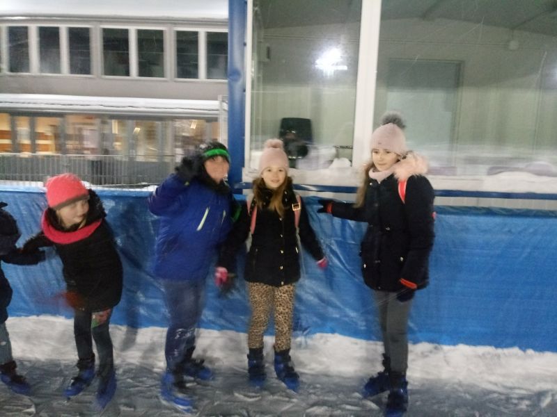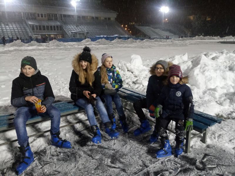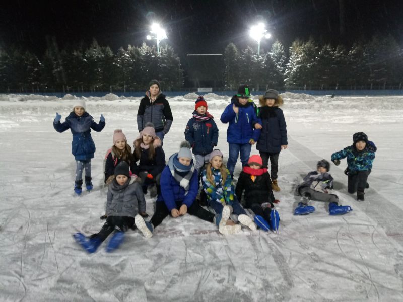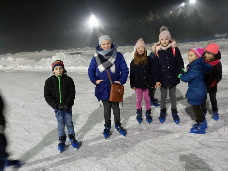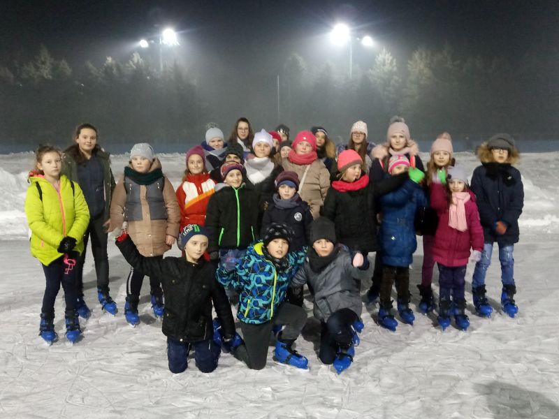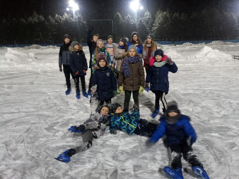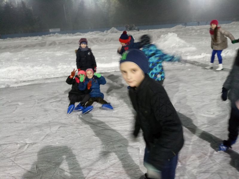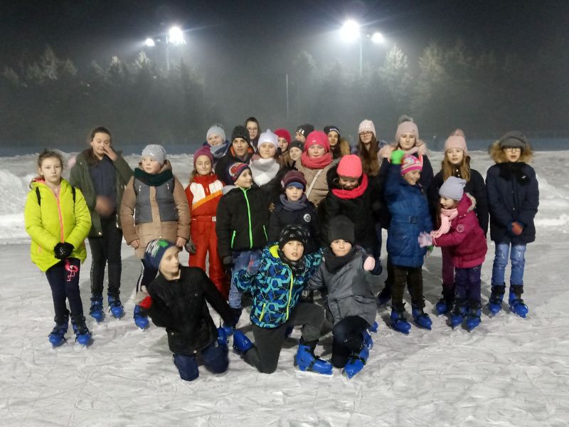W baśniowej wręcz scenerii odbył się 9 stycznia wyjazd uczniów naszej szkoły na ślizgawkę. Majestatycznie wolno i gęsto opadające duże płatki śniegu na bezwietrznej pogodzie, przy głośno odtwarzanej dynamicznie dopasowanej do jazdy na łyżwach muzyce, tworzyły niezapomnianą atmosferę świetnej zabawy. Nie przeszkodziły w niej nawet liczne upadki na twardy lód. A nieporadne na początku pierwsze kroki, zamieniały się z każdym okrążeniem w coraz większą samodzielność i pewność siebie. Pomimo zmęczenia - 1,5 godziny spędzone w intensywnym ruchu - dobre humory dopisały wszystkim uczestnikom do samego końca. Zobaczymy zresztą, ilu chętnych będzie na kolejny wyjazd za tydzień.